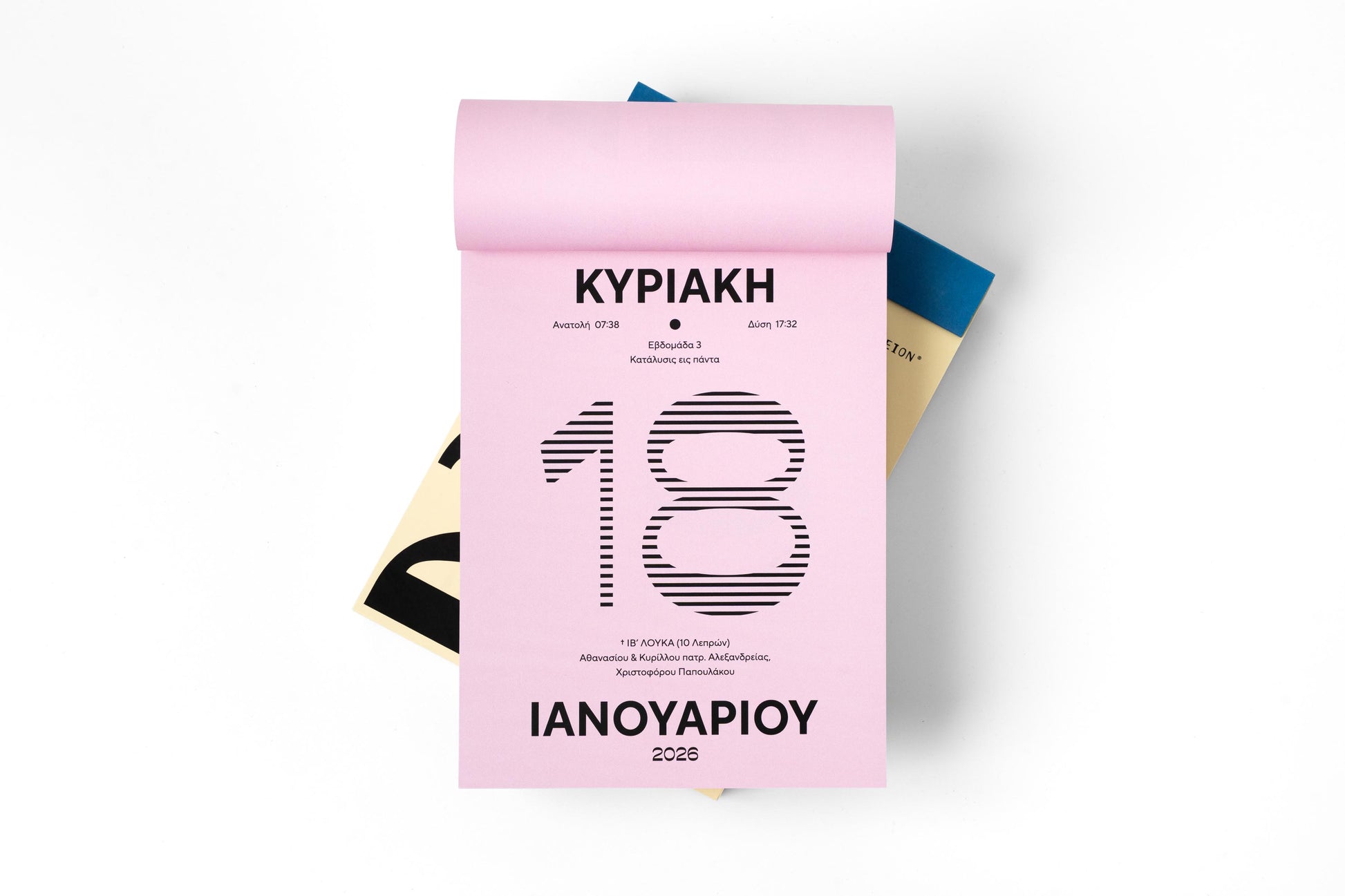 Όλες οι πληροφορίες της ημέρας με μια ματιά – ανατολή & δύση, φάσεις σελήνης, εορτολόγιο, νηστείες – ακριβώς εκεί που τις θέλεις: στο γραφείο, τη βιβλιοθήκη ή σε τοίχο, χάρη στην ενσωματωμένη βάση για επιτραπέζια και επιτοίχια χρήση. Το ειδικό περφορέ επιτρέπει την εύκολη αποκοπή φύλλων χωρίς σκισίματα, ενώ η πίσω όψη του κάθε φύλλου είναι λευκή για να σημειώσεις ότι θέλεις.