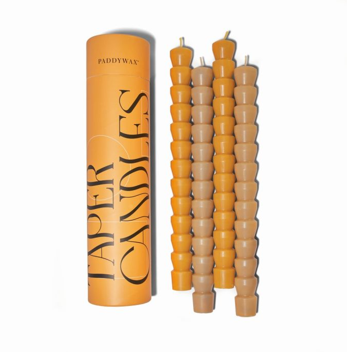 Βάλτε χρώμα στη διακόσμηση με αυτό το κυλινδρικό κουτί που περιέχει 4 κεριά δείπνου! Αυτά τα κωνικά κεριά θα προσθέσουν ζεστό φως & κατάλληλη ατμόσφαιρα σε οποιοδήποτε τραπέζι δείπνου ή γιορτή. 100% Κερί σόγιας, βαμβακερό φυτίλι, 24.3 cm ύψος έκαστο. Η διάρκεια αντιστοιχεί σε 45+ ώρες ορθής καύσης.