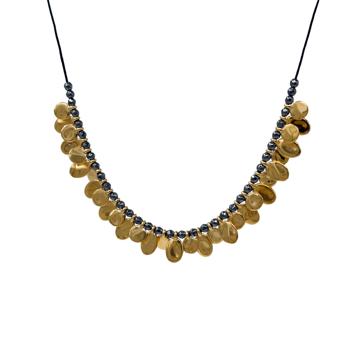 Κολιέ με Μεταλλικά Στοιχεία Επιχρυσωμένα με Χρυσό 24Κ Και Αιματίτες