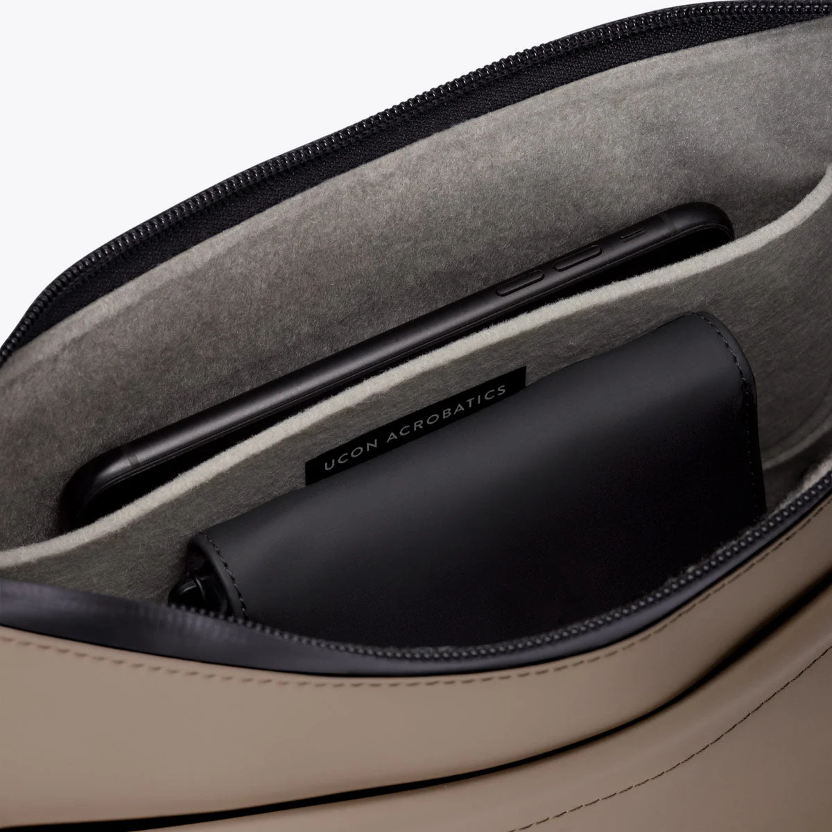 The Lotus Infinity Series is crafted from ‘PUrTEX∞’ – a custom ultra-durable tech material that Ucon Acrobatics developed over several years. It is made from recycled textile waste and finished with a rigid coating of solvent-free polyurethane (PU).