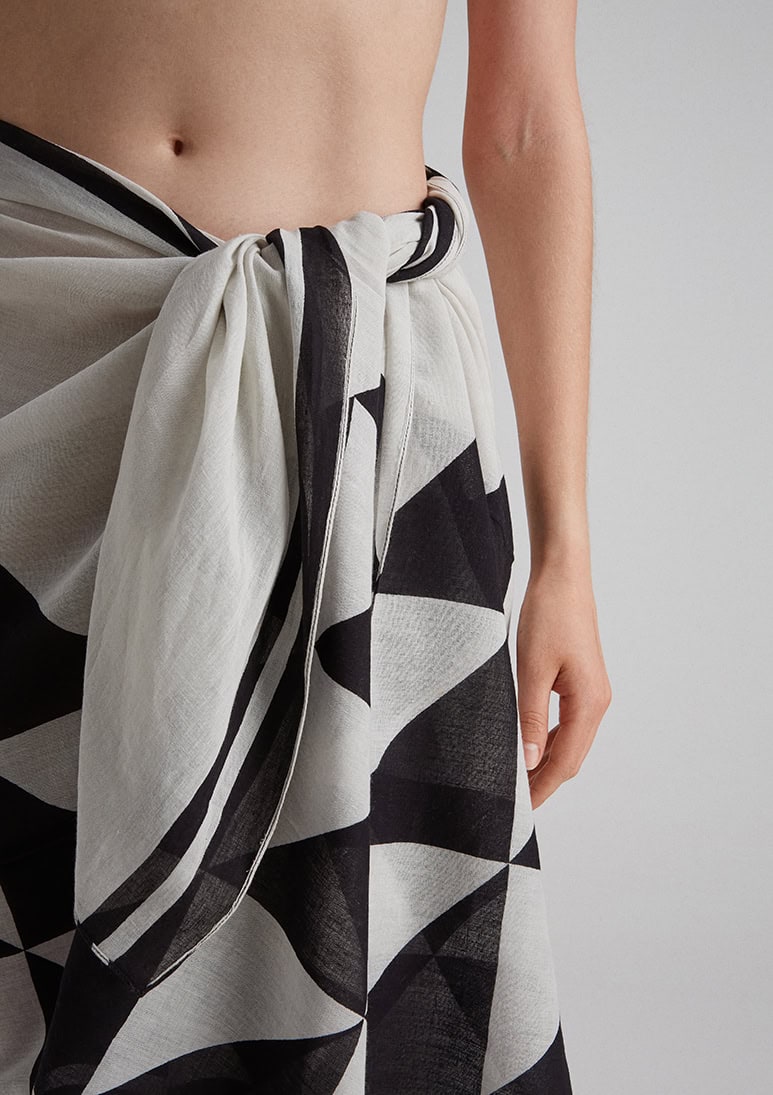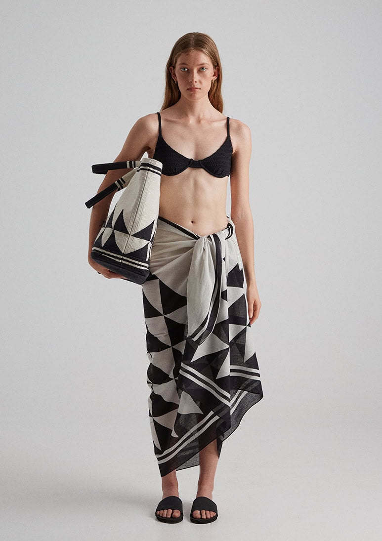 Meet the Beausoleil pareo, a summer essential, made from ultra-soft cotton, flaunting an exclusive in-house print with a chic triangle motif in black and white. Wrap it around your waist for instant beach vibes, drape it when you need sun protection for your shoulders, or style a Mini Top for laid-back charm. With endless possibilities, this classic rectangular pareo is your ultimate choice for coastal comfort or a leisurely stroll through the streets of the coolest retreats.