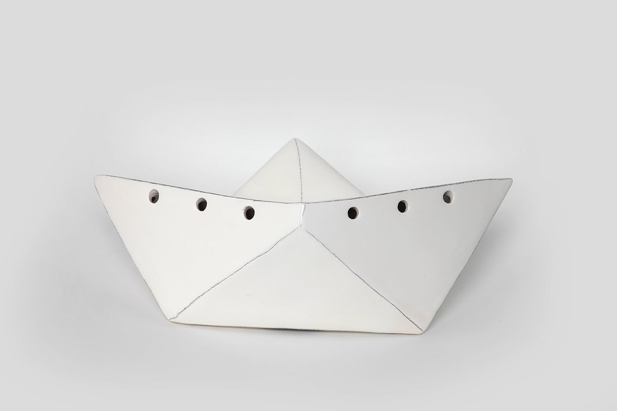 Το χάρτινο καραβάκι παίρνει μια άλλη διάσταση στα χέρια του Χρήστου Βλιώρα ο οποίος του δίνει διαφορετική ιδιότητα αλλά και αισθητική. Σε ένα κεραμικό λευκό καράβι φωτιστικό το οποίο μπορείτε να ακουμπήσετε σε ένα τραπέζι ή στο πάτωμα