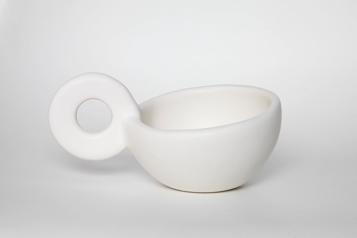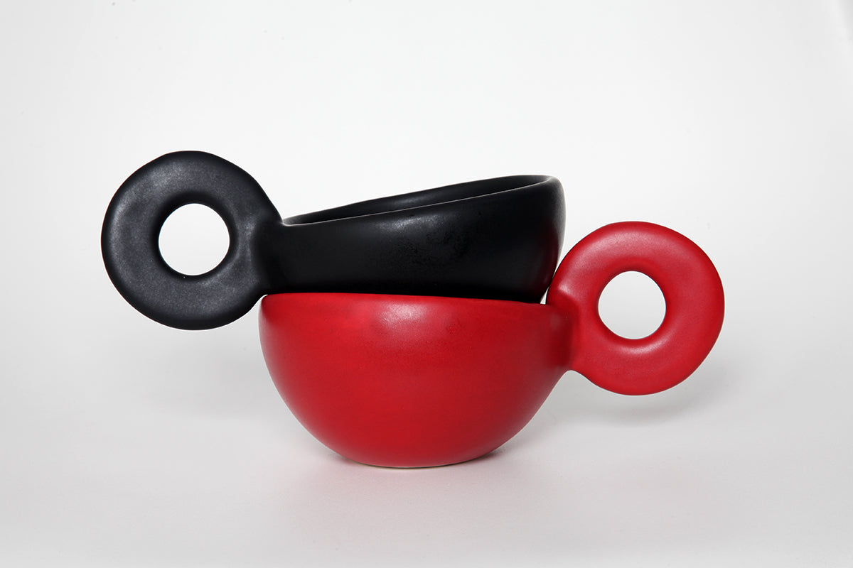 Χειροποίητη κεραμική κούπα με στρογγυλεμένες καμπύλες από το Χρήστο Βλιώρα. Σε χρώμα λευκό, μαύρο ή κόκκινο.
