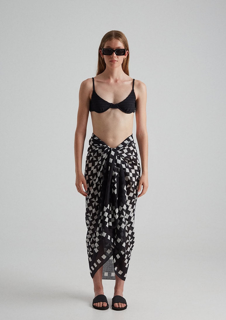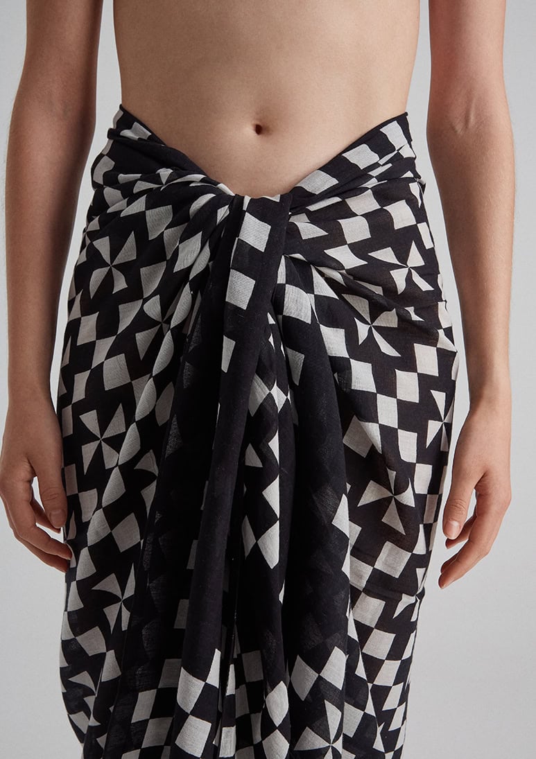 Meet our Corsica pareo, a summer essential, made from ultra-soft cotton, flaunting an exclusive in-house print with a chic checkered motif in black and white. Wrap it around your waist for instant beach vibes, drape it when you need sun protection for your shoulders, or style a Mini Top for laid-back charm. With endless possibilities, this classic rectangular pareo is your ultimate choice for coastal comfort or a leisurely stroll through the streets of the coolest retreats.
