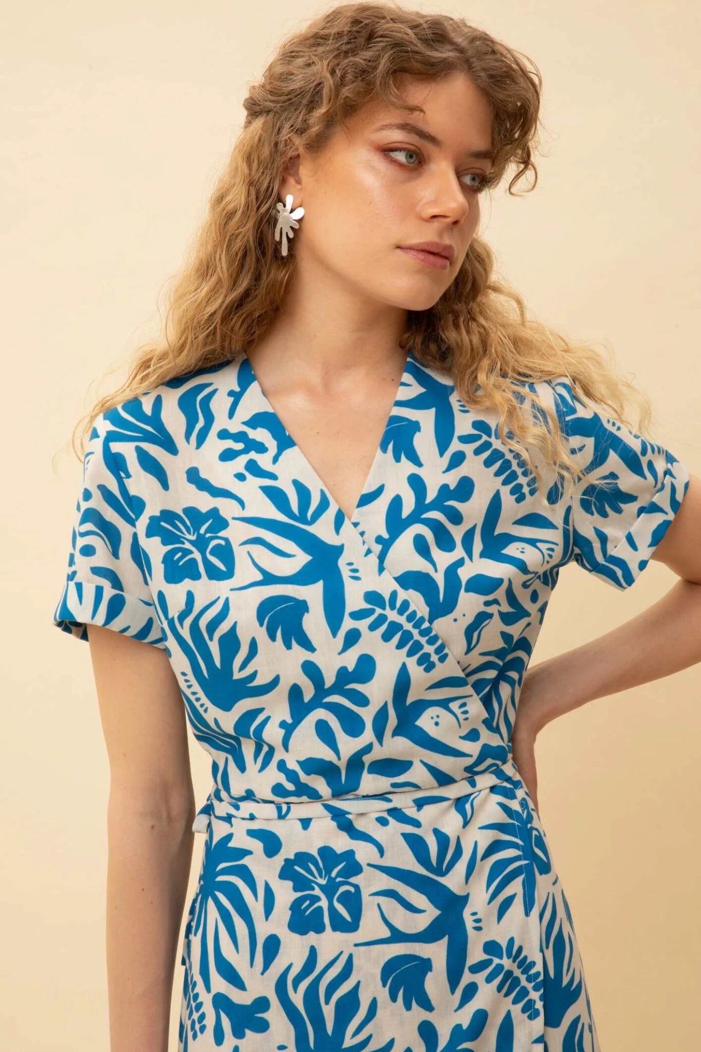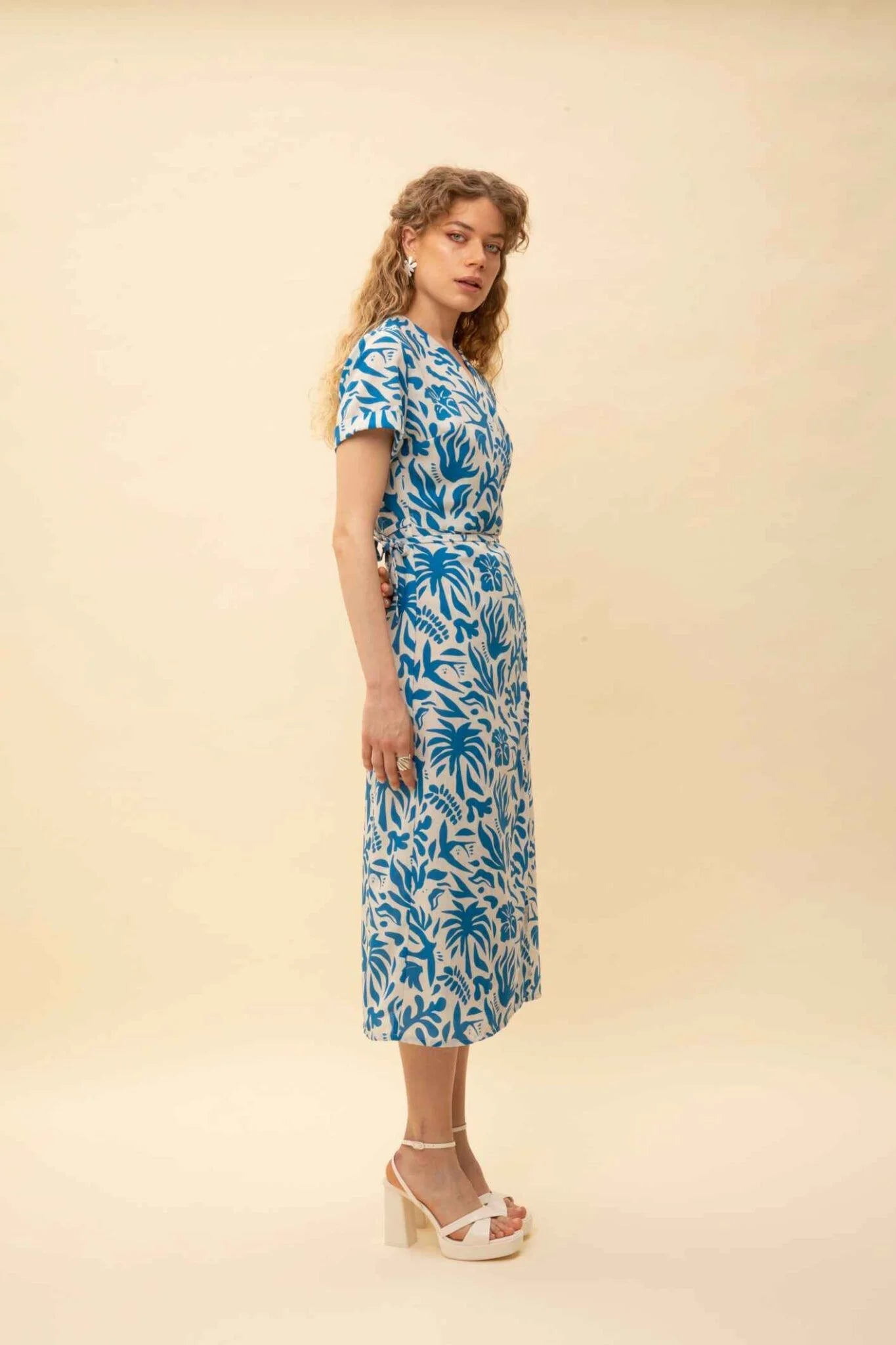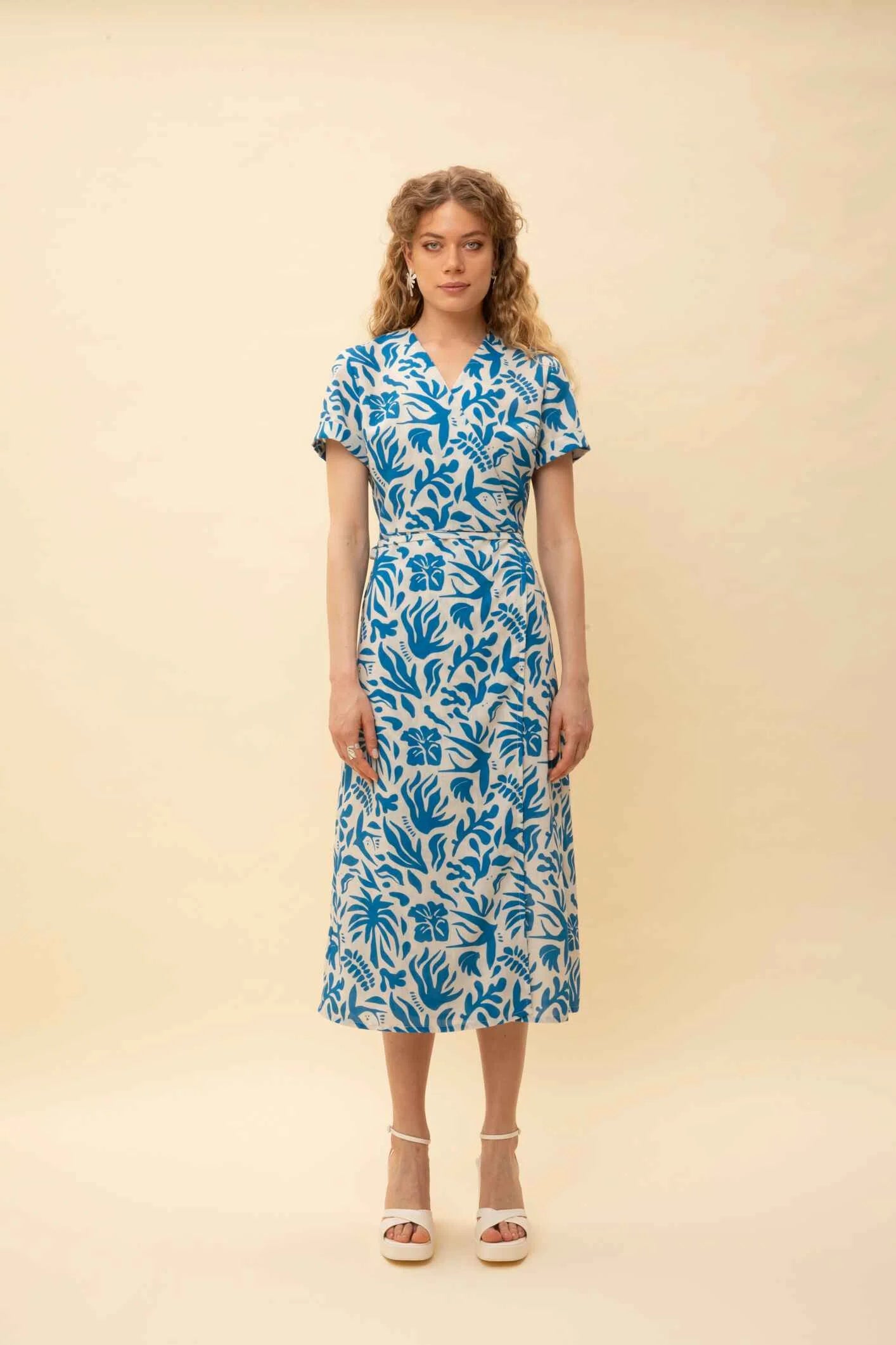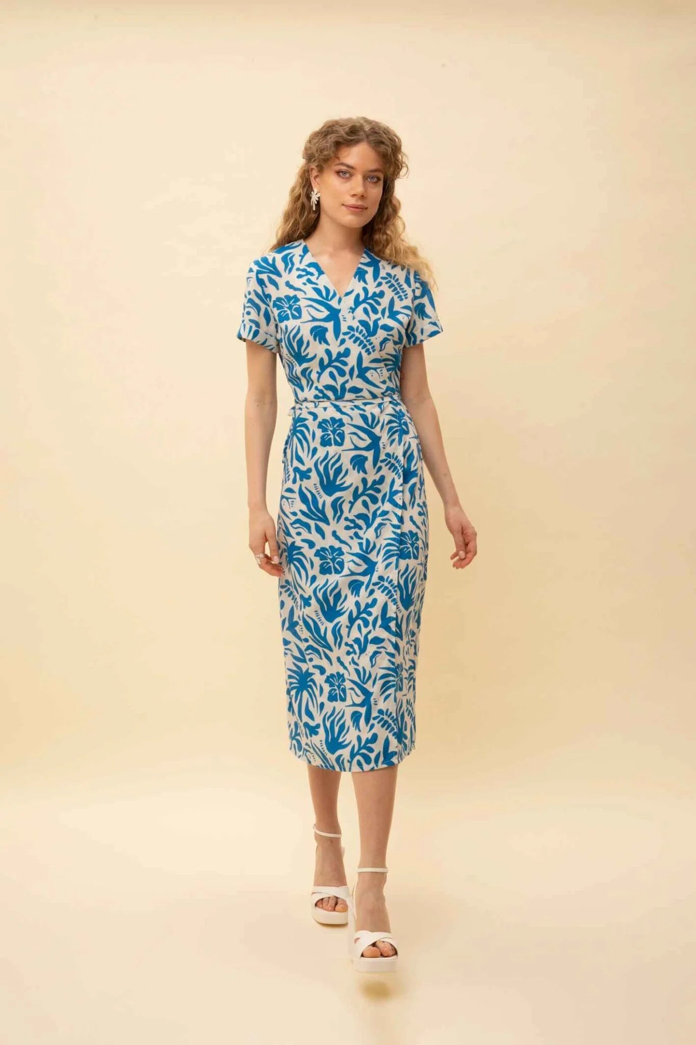 With its elegant Oasis, blue-white print and flattering midi length, this wrap dress is perfect for adding a dash of effortless elegance to your daily look! A perfect choice for special occasions, the office, or just for strolling around town. Complete your look with high heels or sandals.