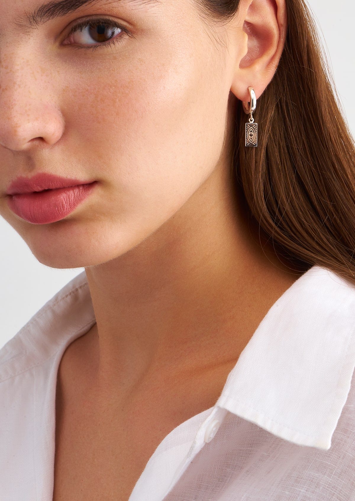 A sturdy pair of slip-on hoops with the evil eye engraved Hermina tag. Wear them as a pair or single, combine with other earrings or match with other pendants from the Hermina collection. Sometimes it is true that “the more the merrier”. Sky is the limit!