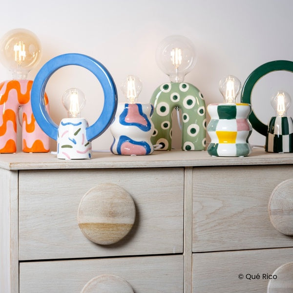 Brighten up your space with the ceramic Alfonso lamp from Qué Rico. This Belgian-designed lamp, inspired by the vibrant Spanish lifestyle and featuring the playful Dancing Dots pattern, adds a splash of joy to any room. With its organic shape and radiant colour combination of pink, red and beige, this handmade lamp is a true eye-catcher in any interior. Hand-painted with love, every piece is unique! The Alfonso lamp comes with a cable and is CE certified for your safety.