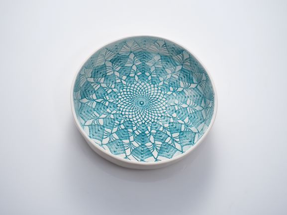 Μεσαίο στρογγυλό κεραμικό πιάτο/πιατέλα σε γεωμετρικά και άλλα σχήματα όπως αυτά αποτυπώνονται από τα παραδοσιακά σεμεδάκια. Σειρά στρογγυλών πιάτων/πιατέλα σε τρία διαφορετικά μεγέθη, ιδανικά να συνοδεύσουν γεύματα και πλατό για όλες τις περιστάσεις. Σε χρώμα μπλε, πράσινο ή κίτρινο.