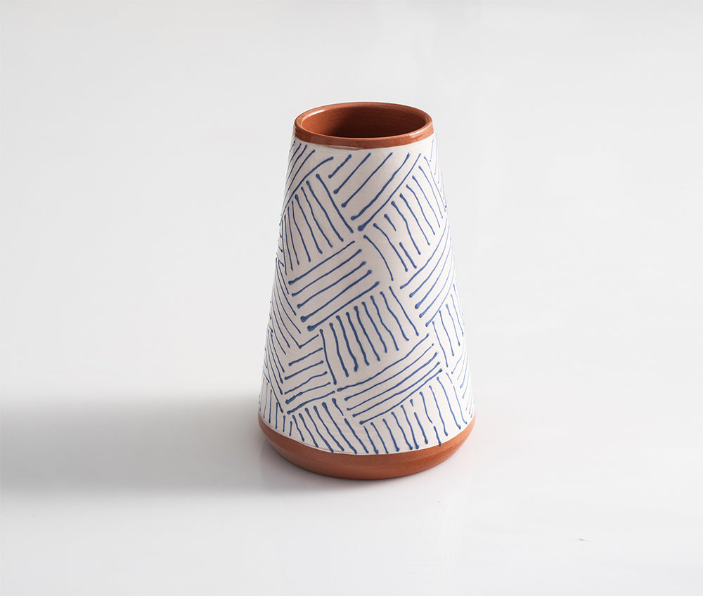 Ένα πρωτότυπο και όμορφο κεραμικό βάζο, που συνδυάζει την παραδοσιακή ελληνική χρωματική παλέτα με το σύγχρονο design. Διακοσμήστε το καλοκαιρινό τραπέζι με τα καλούδια, ή οποιοδήποτε σημείο του σπιτιού, με ένα αντικείμενο ιδιαίτερης αισθητικής και σύγχρονου σχεδιασμού.