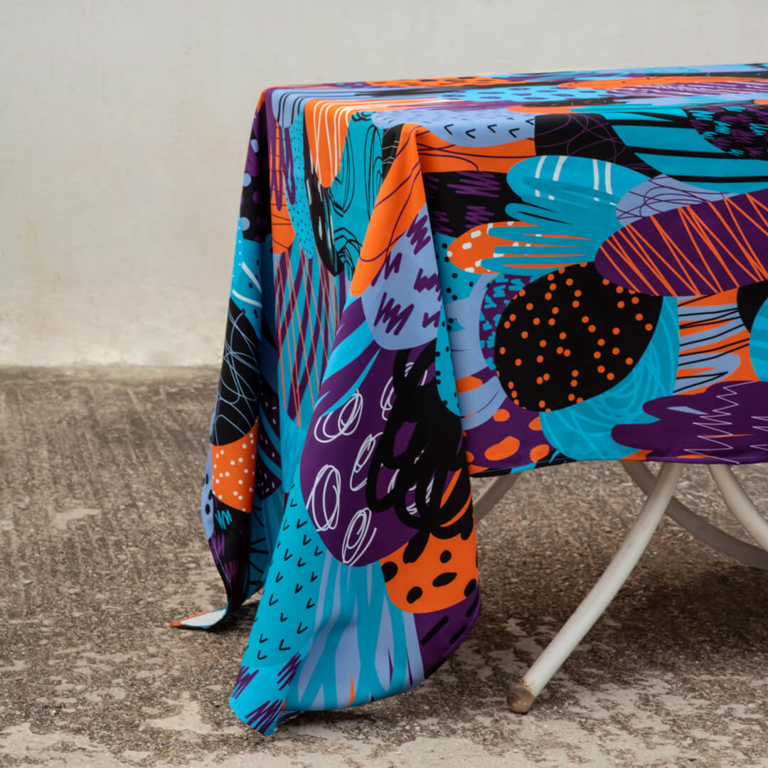 Bring vibrant artistry to your dining table with the Oasis Tablecloth. This colorful, custom-illustrated design adds a lively touch to any meal or gathering. Perfect for casual dining or special occasions, this tablecloth turns your table into a captivating centerpiece, transforming everyday moments into something extraordinary.