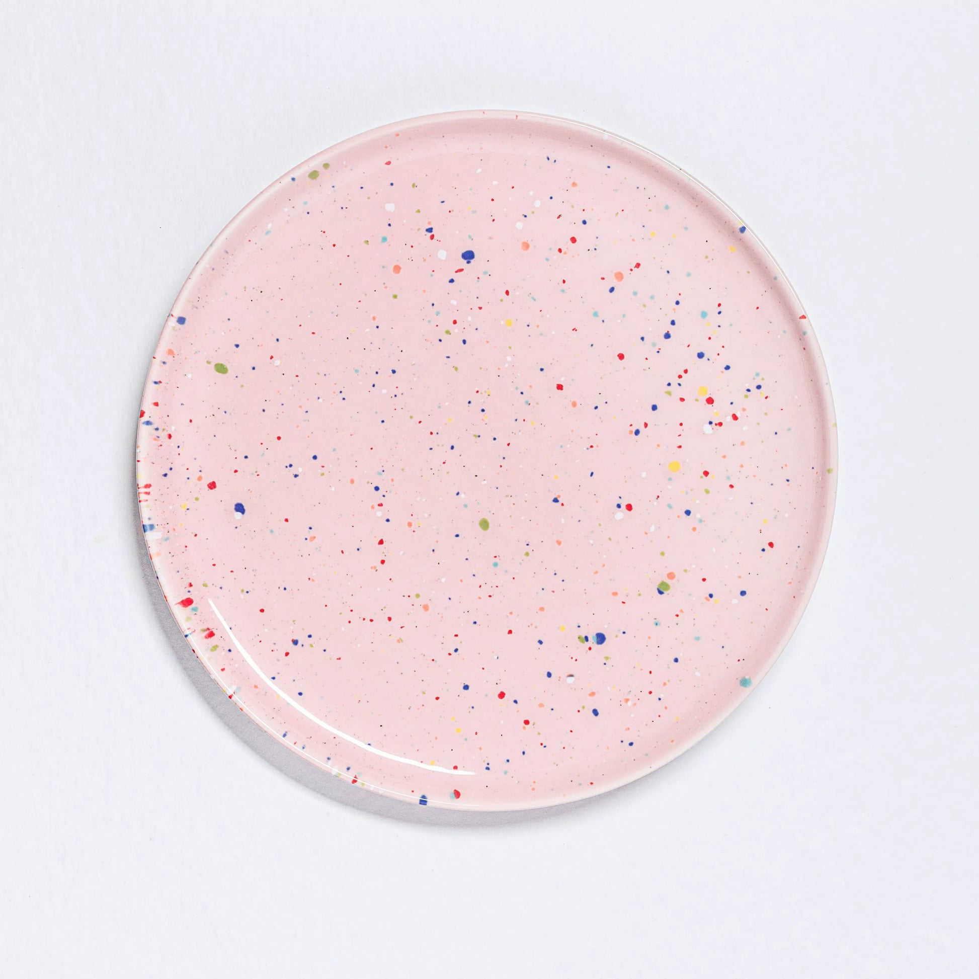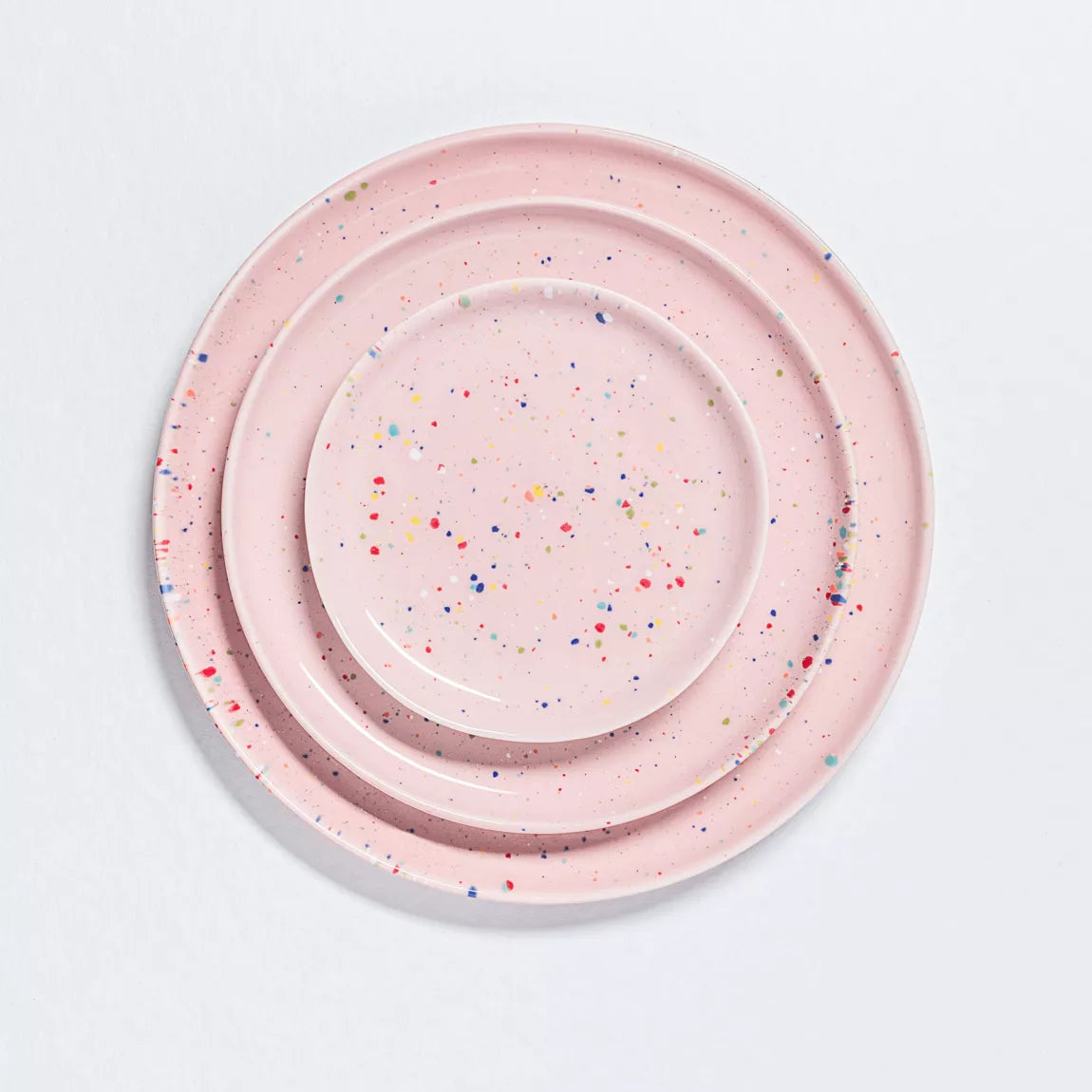 Our Party Collection features a special type of glaze that may exhibit areas where speckles become diffused due to the glass's reactive nature during processing. We find these unique, unpredictable variations to be the most beautiful aspect of the glaze.