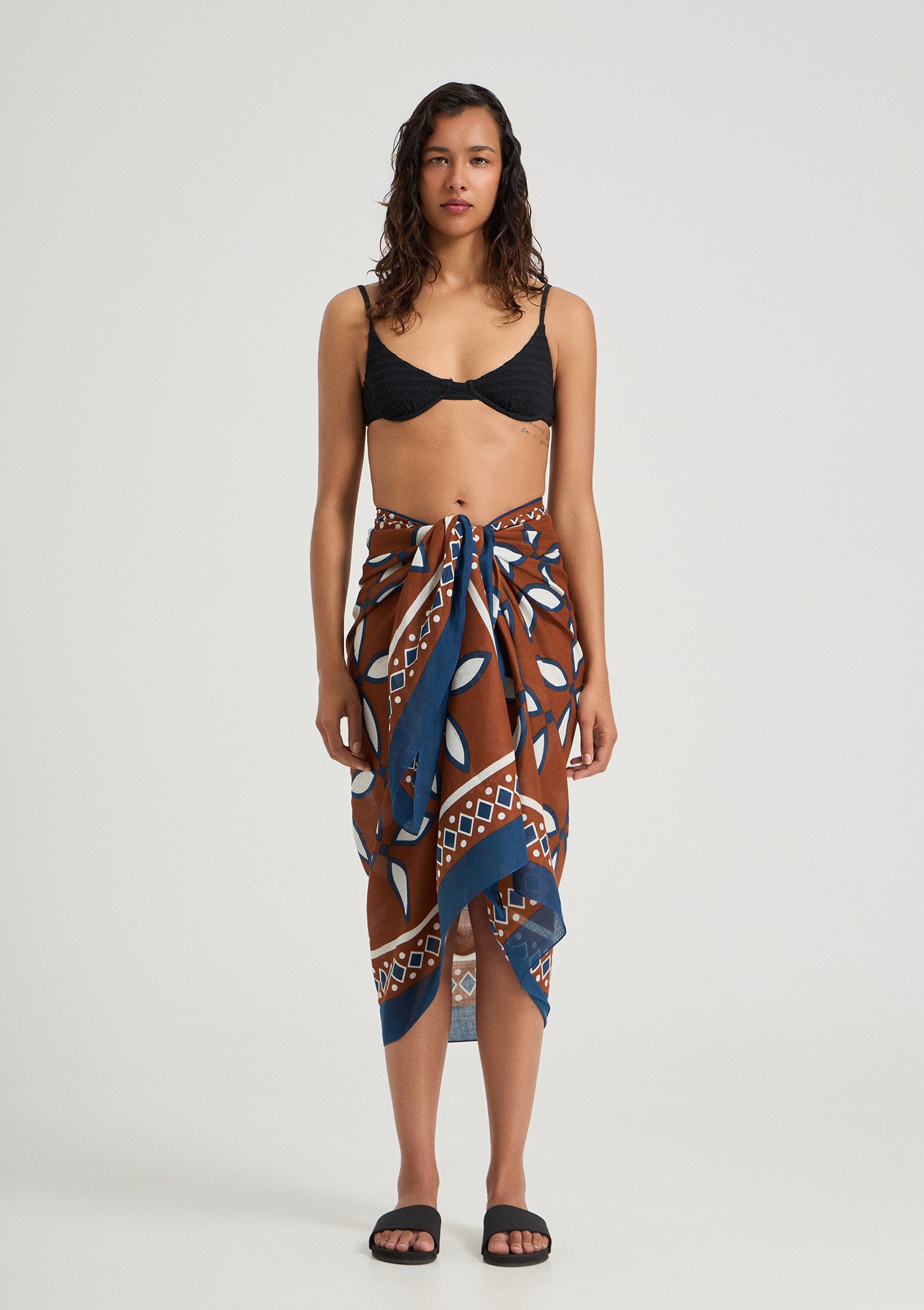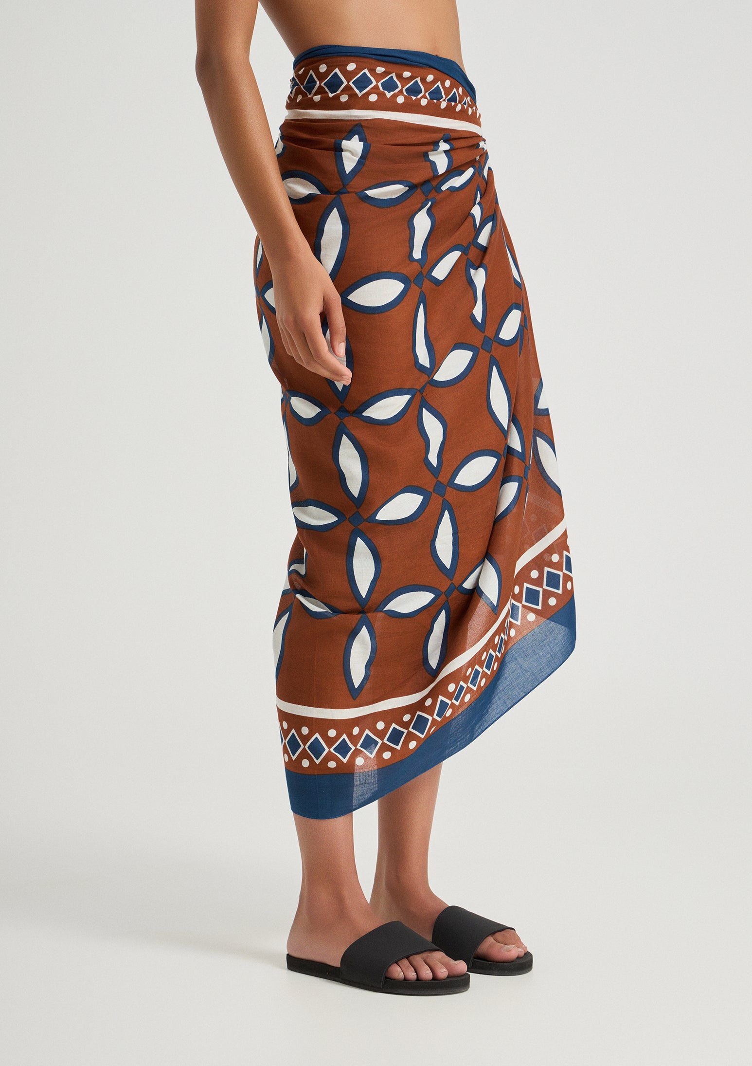 The Tilea Pareo features an exclusively designed in-house print, showcasing an oversized geometric motif inspired by Mediterranean tiling. Crafted from ultra-soft cotton, this versatile pareo is perfect for beach days, poolside lounging, or casual strolls. Its rectangular shape offers ample coverage, while the lightweight fabric ensures comfort throughout the day.