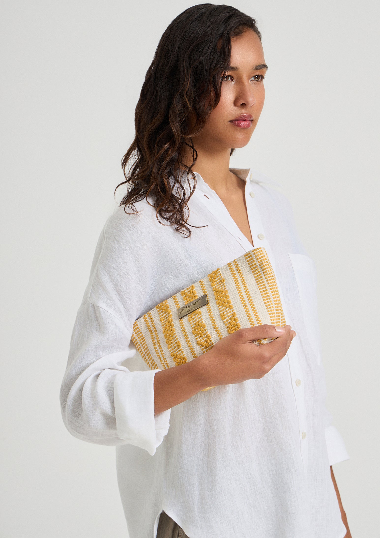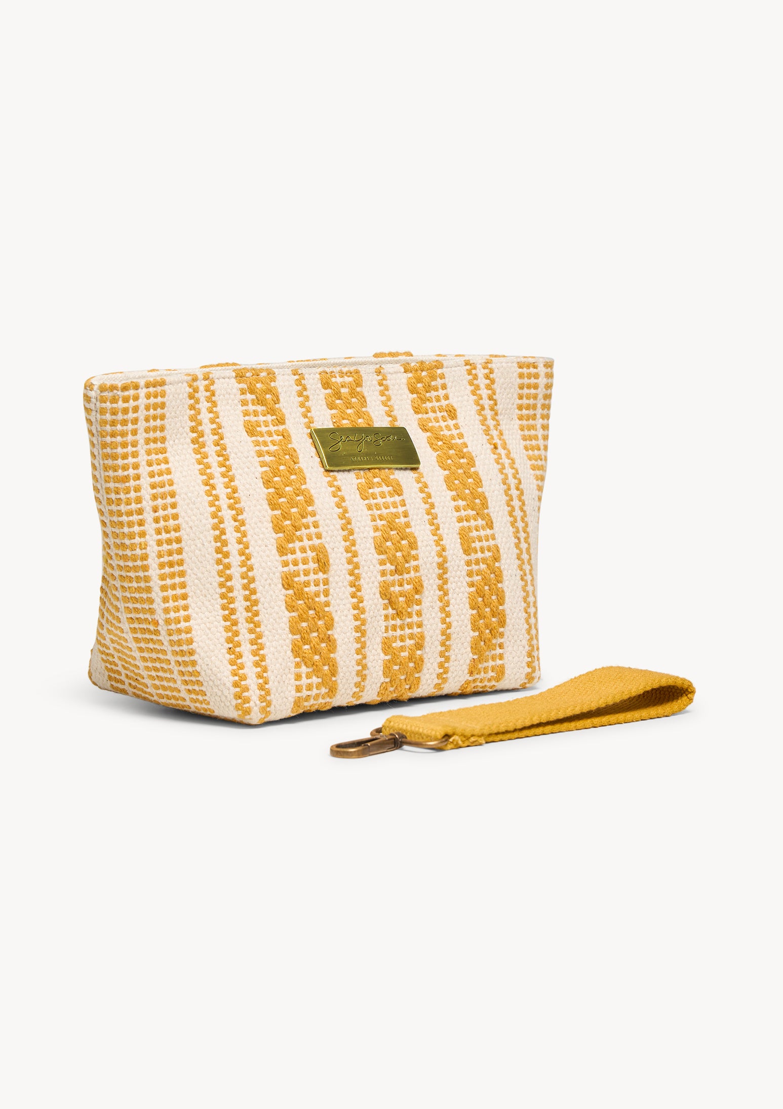 The Velassaru Mini Clutch brings together practicality and refined elegance. Handcrafted from durable cotton, this compact essential is a must-have for those who appreciate both style and convenience. With antique brass details and a branded logo plate, it adds a touch of sophistication to any look. The convenient wrist strap ensures you can carry it with ease, while the secure zipper closure keeps your essentials safe. Whether you’re heading out for an evening out or need a place to store your summer essentials, this clutch seamlessly transitions from day to night. The canvas-linen interior adds a refined touch, making it the ultimate accessory for effortless summer outings.