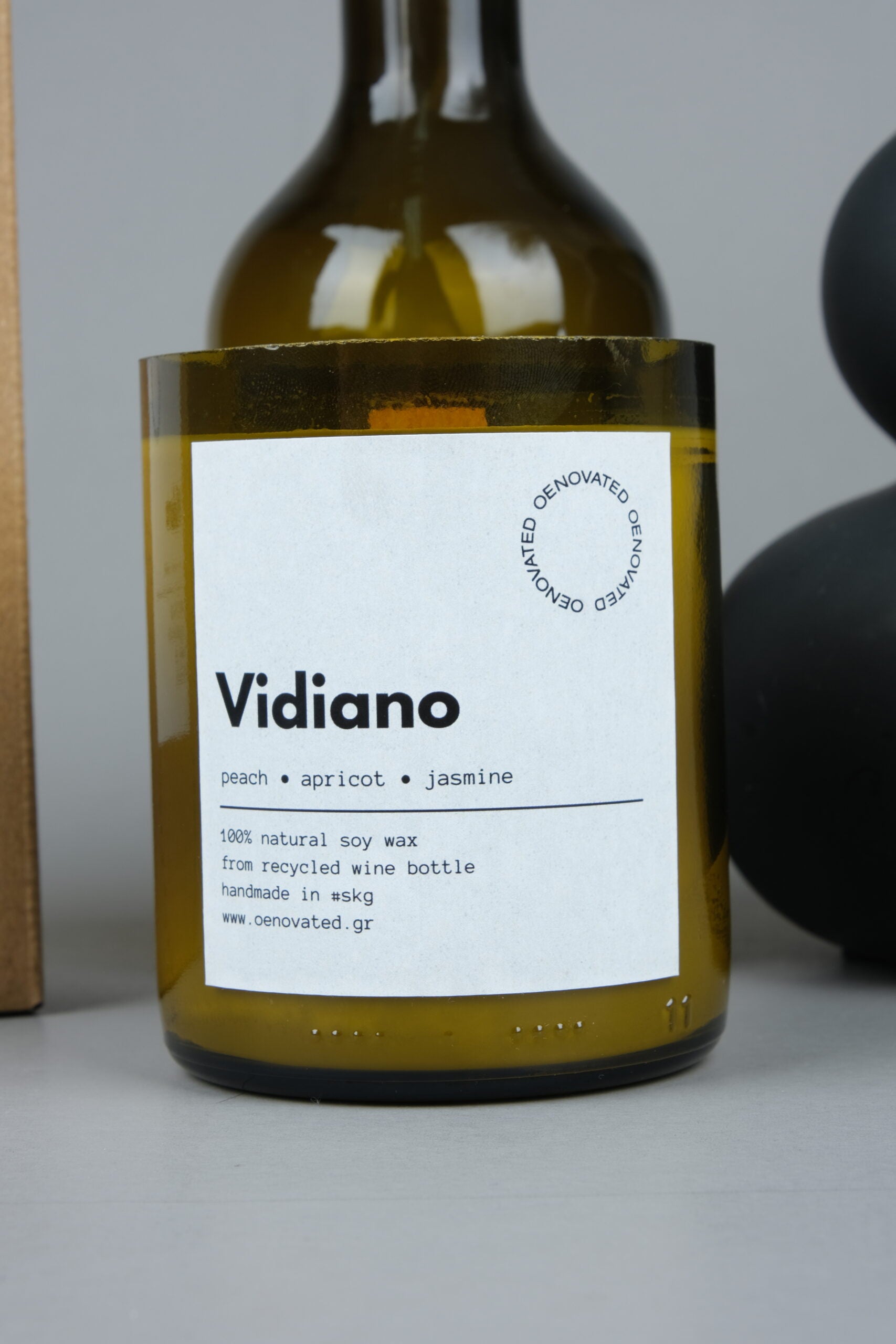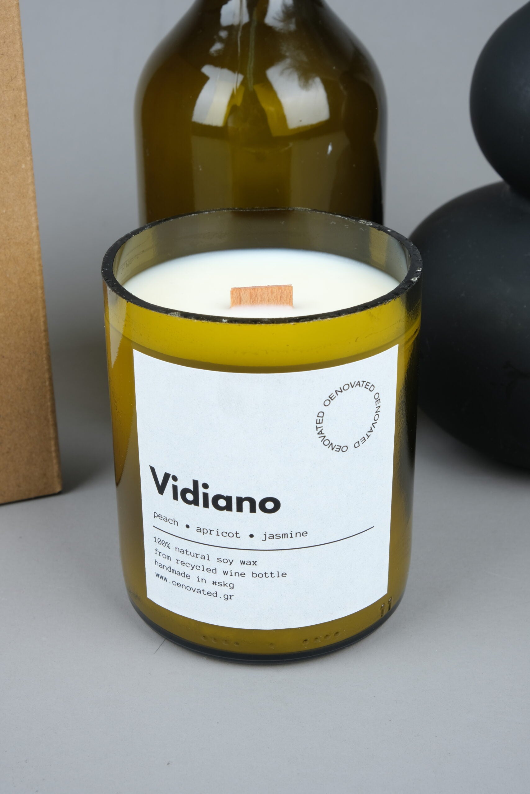 Το κερί Βιδιανό είναι 100% χειροποίητο αλλά και φιλικό προς το περιβάλλον, φτιαγμένο από ανακυκλωμένο μπουκάλι κρασιού και 100% φυτικό κερί σόγιας.