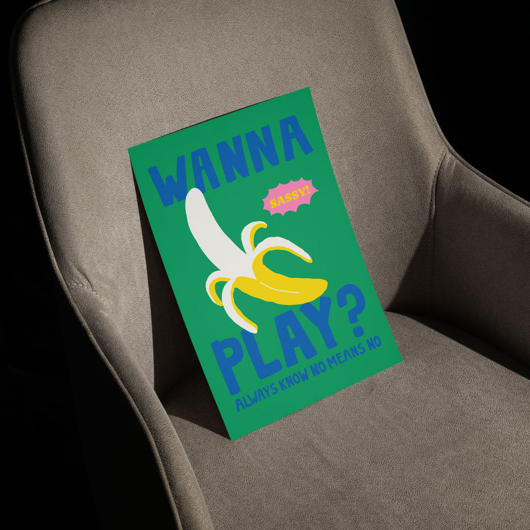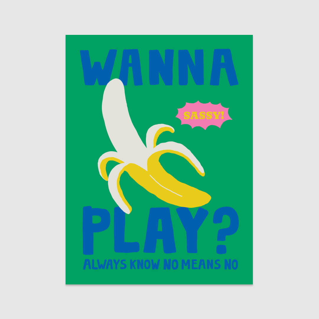 A cheeky invitation illustrated in vivid colors. This playful piece adds a fruity twist to your decor while advocating for consent with the signature reminder, “Always know, no means no.”