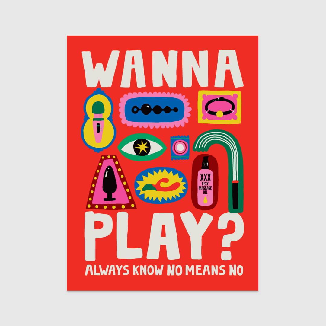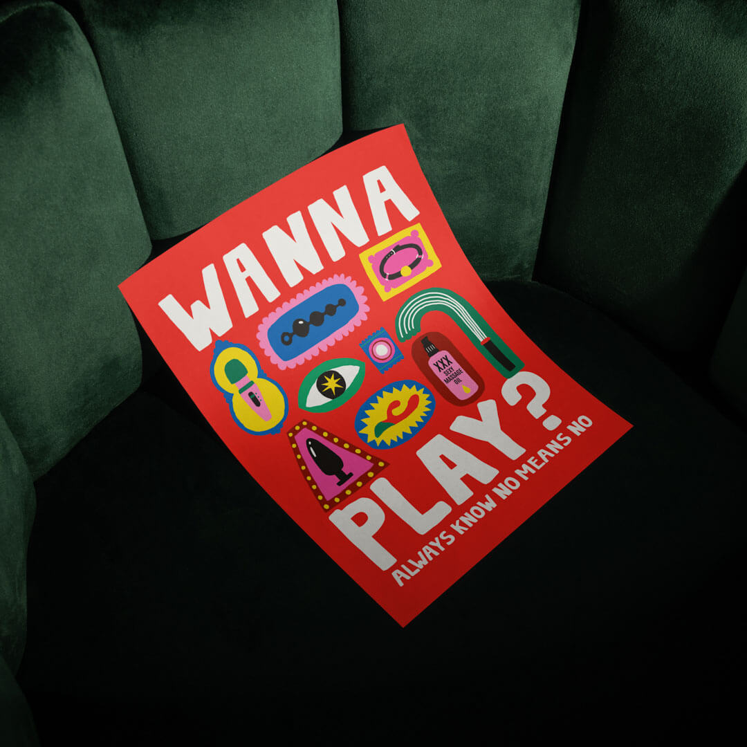 Vibrant and tantalizing, this poster sparks intrigue and openness. With a playful nod to exploration, it emphasizes the importance of consent with the signature sign-off, “Always know, no means no.”